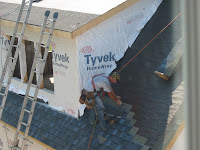 Here's a few shots from inside the house to show you what's been going on in the interior. Old construction stairs removed on Friday & nice new oak staircase was installed. Rails and landing are still in-work. Air handler & ducting for 2nd floor heating/cooling was installed in the attic. Another similar system will eventually be installed in the crawl space to manage the first floor air. Gas fireplace box installed in first floor 'away-room', with cabinet space & TV to be built-in above it. Starting to fill-in on inside of house :)